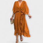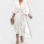 Lehce průhledné rukávy a asymetrický lem dodávají hravý nádech, zatímco opasek na zavázání zvýrazňuje pas a zajišťuje lichotivé padnutí. Ideální pro slavnostní příležitosti nebo zvláštní okamžiky v každodenním životě – šaty Amoura slibují sebevědomý a stylový vzhled.
