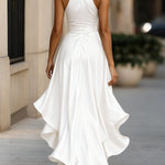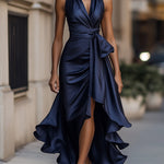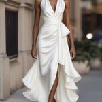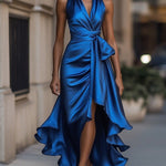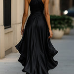 Karolína | Saténové šaty s volánky a halter výstřihem