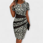 Zdůrazněte svou siluetu s těmito nápadnými šaty s leopardím potiskem, které kombinují moderní design s ženským výstřihem ve tvaru klíče.